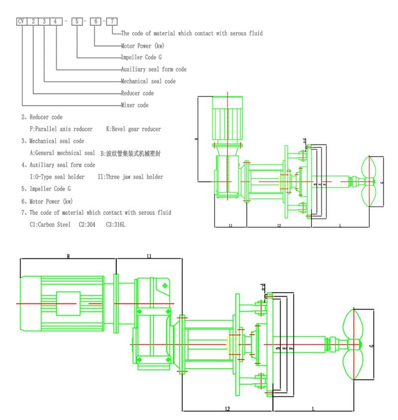 El mezclador de entrada lateral tipo CV se puede instalar en tanques de petróleo, tanques de lubricante, tambores de fueloil, tanques de parafina y algunos tanques de almacenamiento para aditivos y otros medios que deban agitarse.