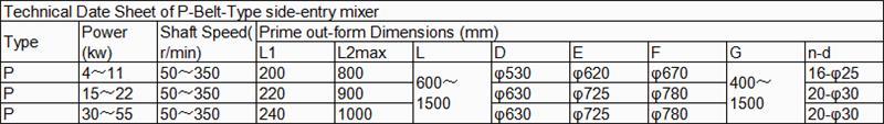 El mezclador de entrada lateral tipo correa P se puede instalar en tanques de petróleo, tanques de lubricante, tambores de fueloil, tanques de parafina, tanques de asfalto (para asfalto de caucho pesado, betún de petróleo básico, asfalto de grado A) y algunos tanques de almacenamiento para aditivos y otros. medio que necesita ser agitado.