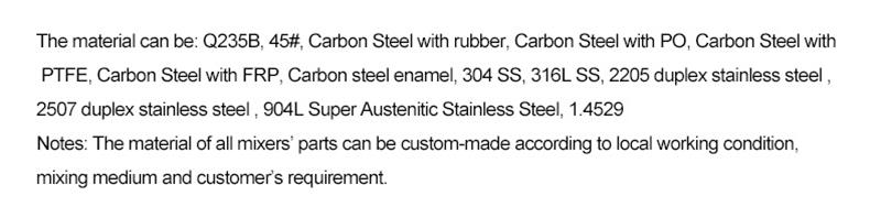Material del mezclador de entrada lateral tipo correa para tanque de almacenamiento