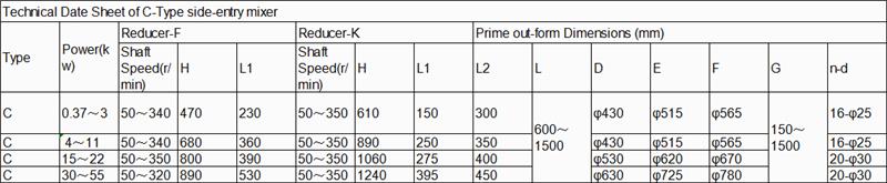 El mezclador de entrada lateral tipo C se puede instalar en tanques de petróleo, tanques de lubricante, tambores de fueloil, tanques de parafina, tanques de asfalto (para asfalto de caucho pesado, betún de petróleo básico, asfalto de grado A) y algunos tanques de almacenamiento para aditivos y otros medios que es necesario revolver.