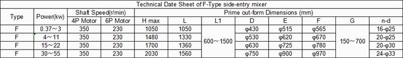Los mezcladores de entrada lateral tipo F se pueden instalar en tanques de petróleo, tanques de lubricante, tambores de fueloil, tanques de parafina, tanques de asfalto (para asfalto de caucho pesado, betún de petróleo básico, asfalto de grado A) y algunos tanques de almacenamiento para aditivos y otros medios que es necesario revolver.